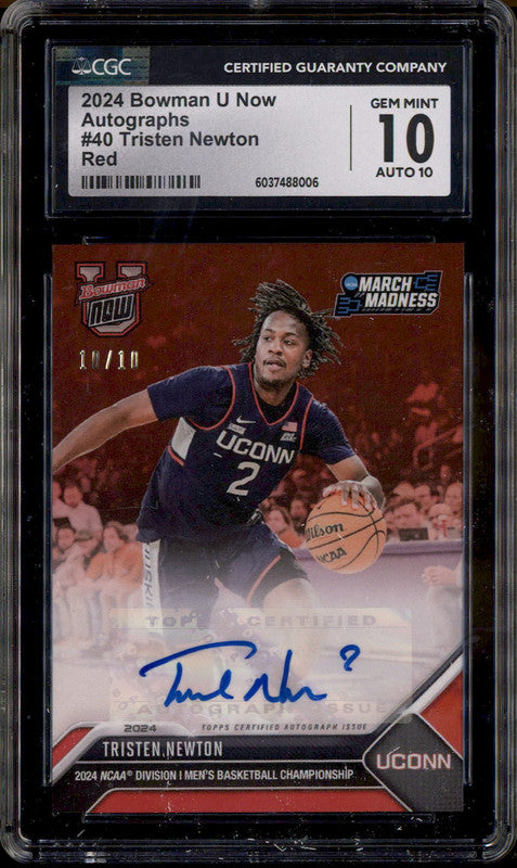2024 Bowman University Autograph Now Red #40 Tristen Newton /10 CGC 10