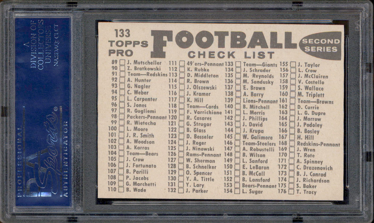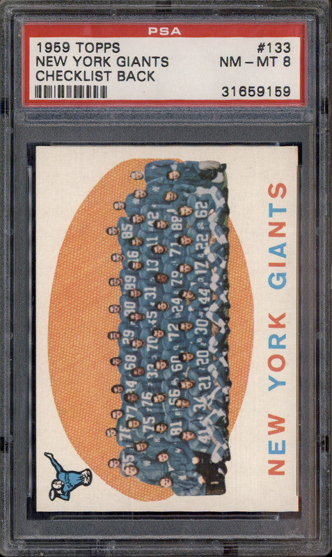 1959 Topps Checklist Back #133 New York Giants PSA 8
