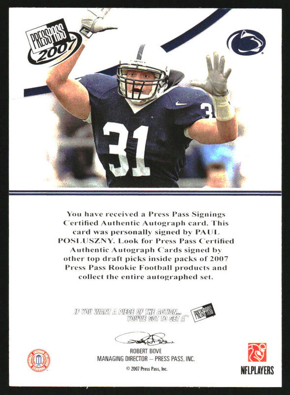 2007 Press Pass Autographs Silver Red Ink #NNO Paul Posluszny Auto /200