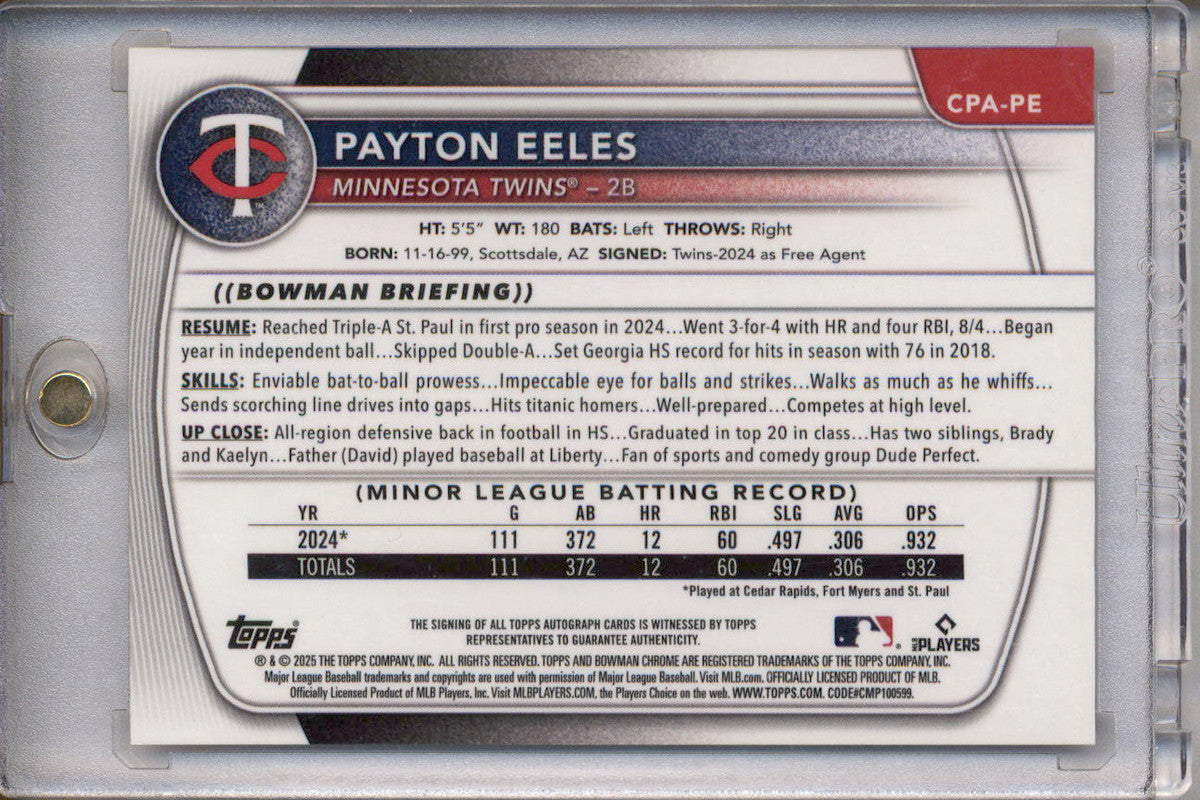 2025 Bowman Chrome Prospect Autograph Red Refractor Payton Eeles RC Auto /5