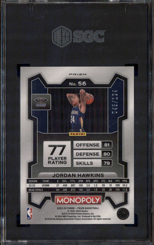 2023 Panini Prizm Monopoly Orange Prizm Jordan Hawkins RC Rookie /124 SGC 9.5
