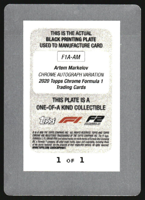 2020 Topps Chrome Formula 1 Printing Plates Black Artem Markelov Auto 1/1