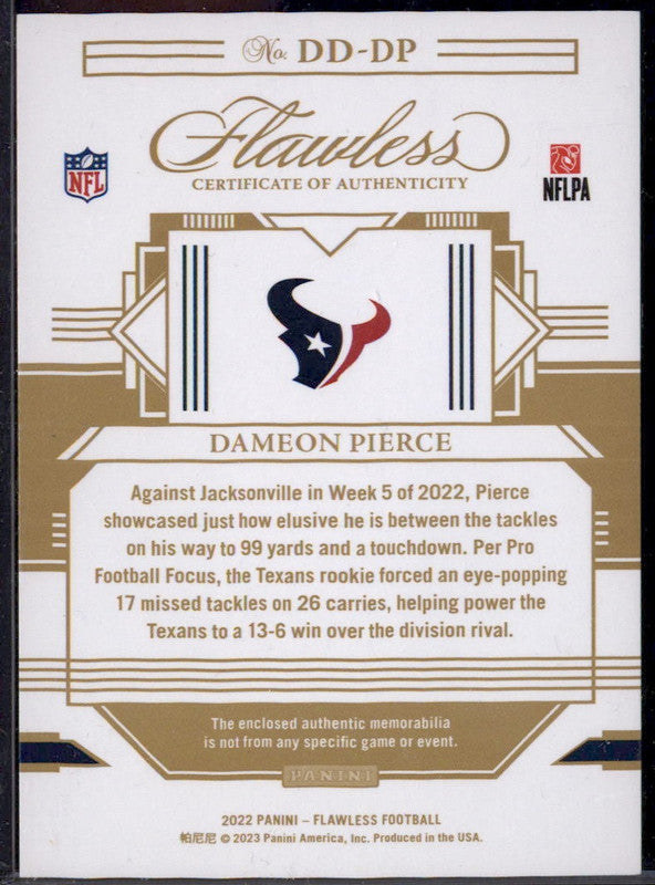 2022 Panini Flawless Debut Duals #DD-DP Dameon Pierce RC /15