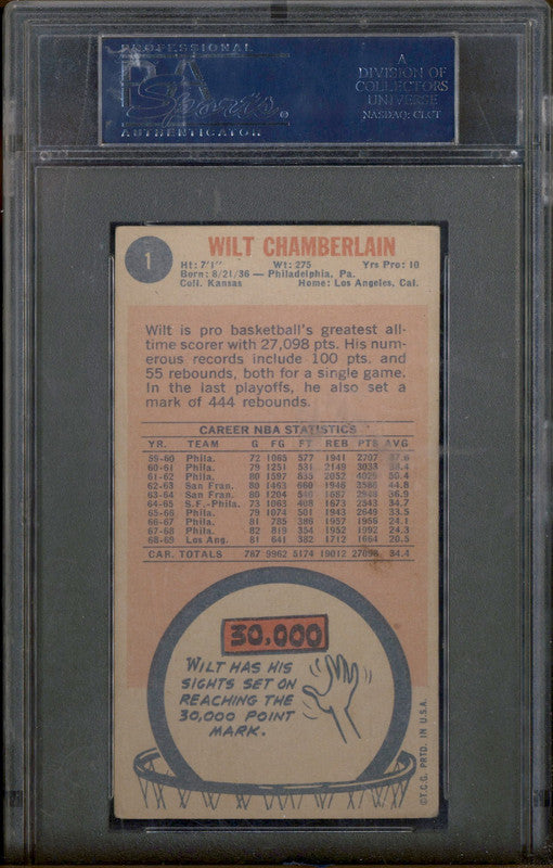 1969 Topps #1 Wilt Chamberlain PSA 3 *Oversized