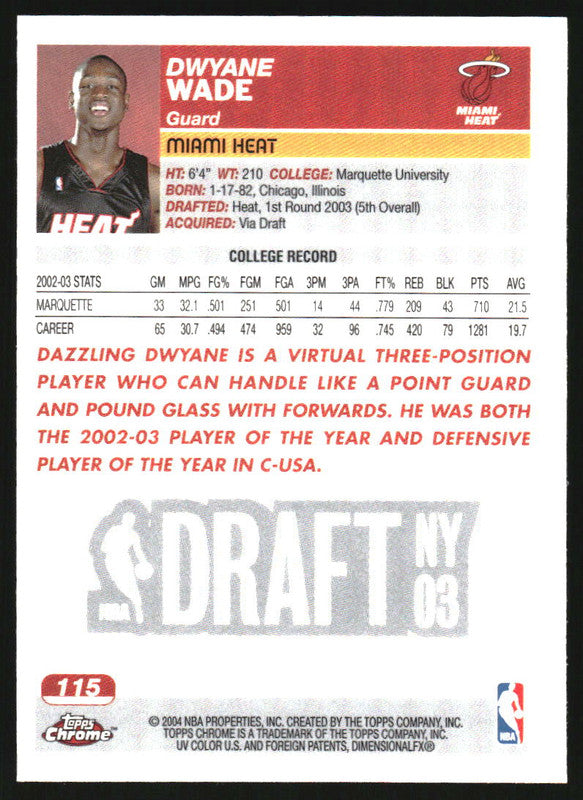 2003-04 Topps Chrome #115 Dwyane Wade RC Rookie