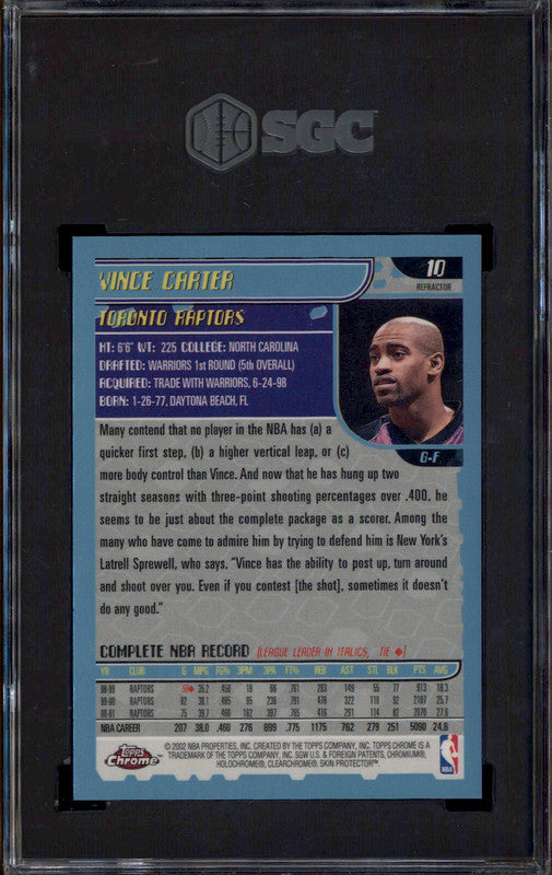 2001 Topps Chrome Refractor #10 Vince Carter SGC 9
