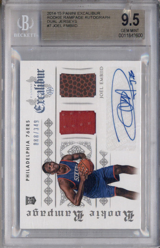 2014 Panini Excalibur Rookie Rampage Auto Dual Jersey Joe Embiid RC /349 BGS 9.5