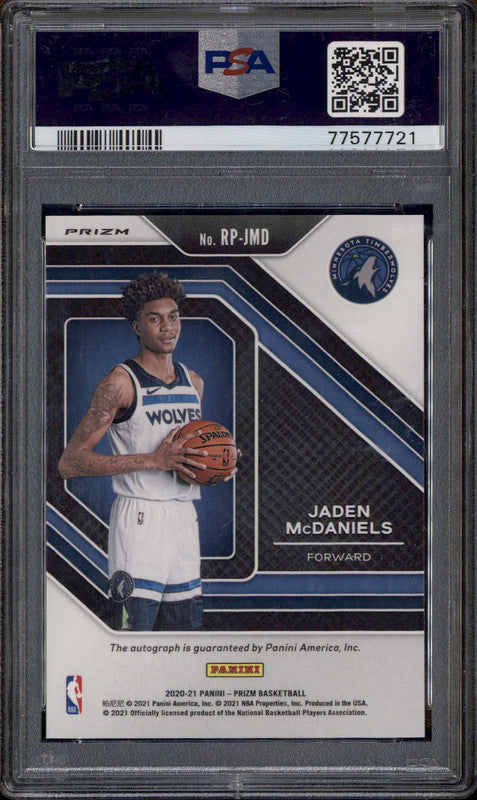 2020 Panini Prizm Rookie Penmanship Silver Prizm Jaden Mcdaniels RC Auto PSA 9