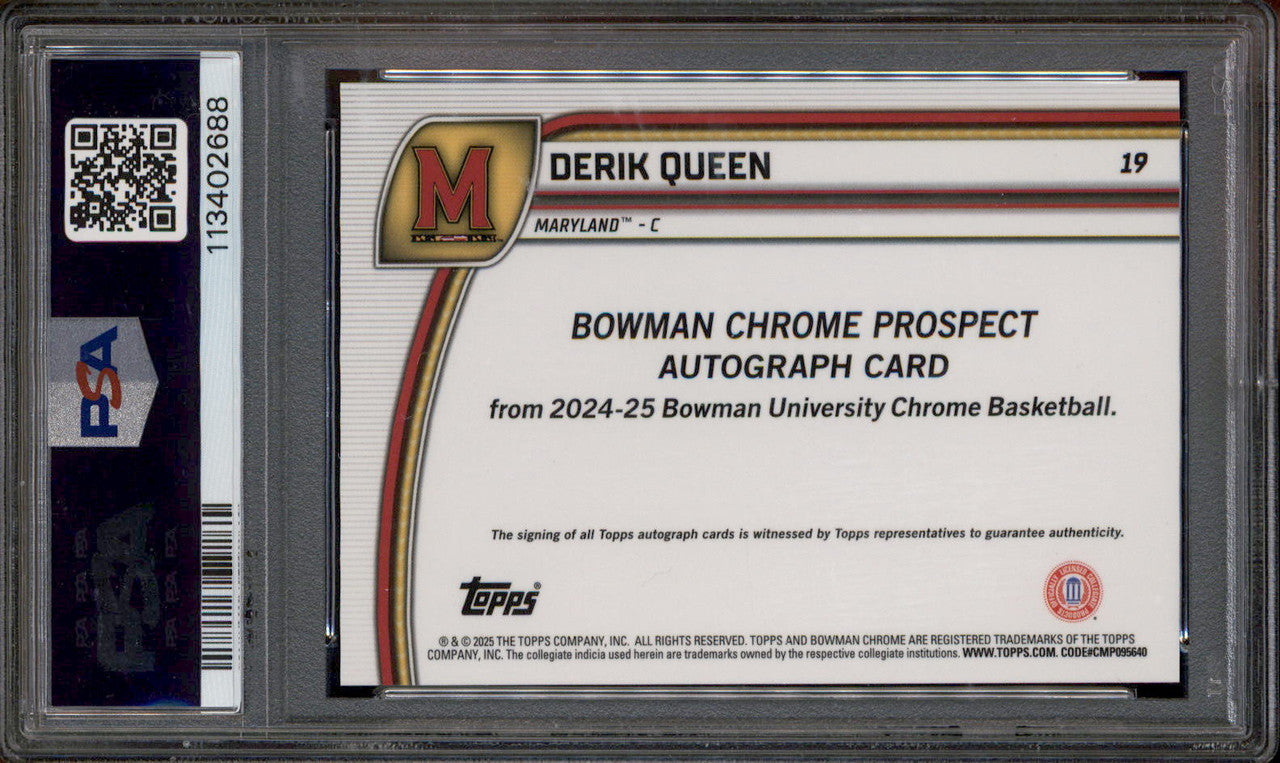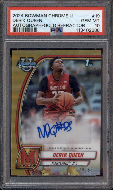 2024 Bowman Chrome University Auto Gold Refractor #19 Derik Queen RC /50 PSA 10