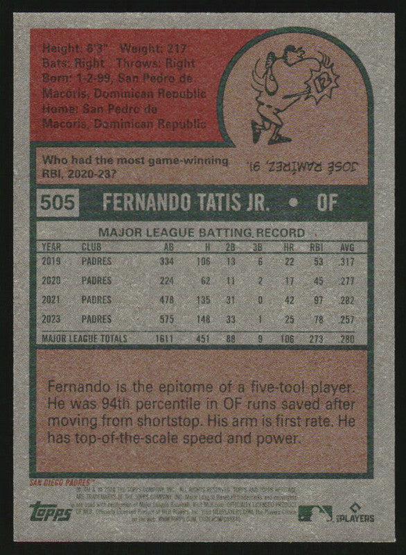 2024 Topps Heritage Mini #505 Fernando Tatis Jr.