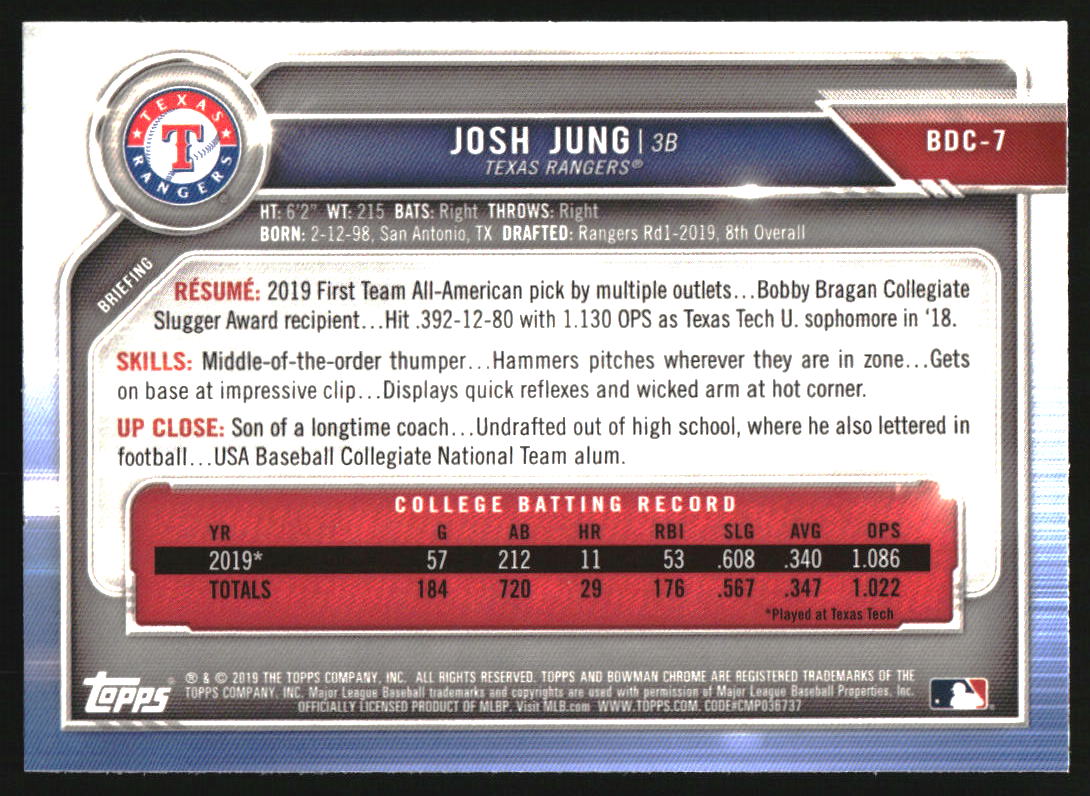 2019 Bowman Draft Sapphire #BDC-7 Josh Jung RC