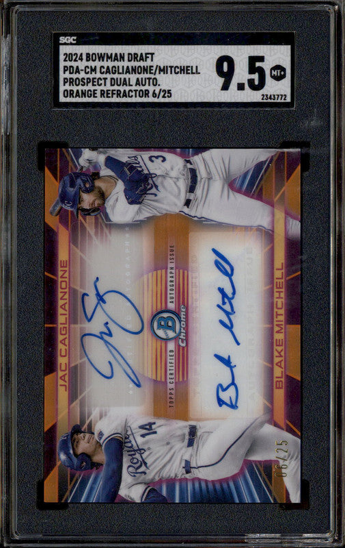2024 Bowman Draft Dual Auto Orange Refractor Caglianone Mitchell /25 SGC 9.5