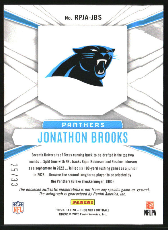 2024 Panini Phoenix Rookie Phenom Jerseys Bronze Jonathon Brooks RC Auto /33