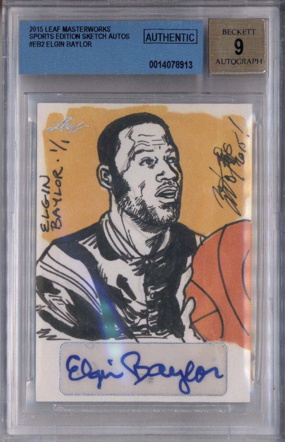 2015 Leaf Masterworks Sports Edition Sketch Auto Elgin Baylor 1/1 BGS Authentic