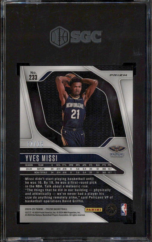2024 Panini Prizm Blue Shimmer Prizm #233 Yves Missi RC /35 SGC 9