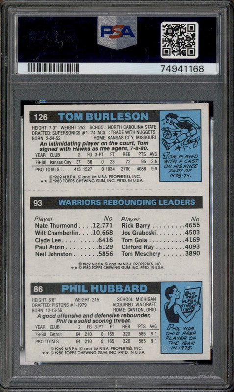 1980 Topps Phil Hubbard Robert Parish Tom Burleson PSA 8