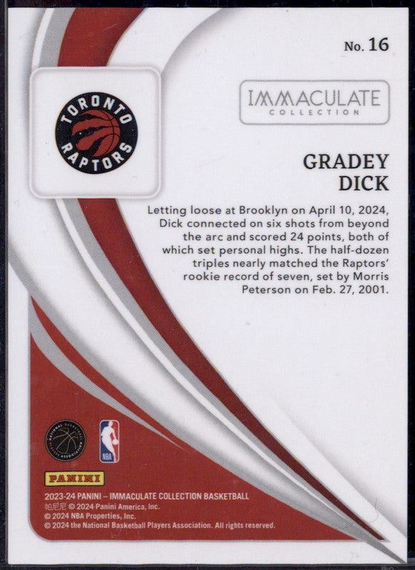 2023-24 Panini Immaculate Red #16 Gradey Dick RC /49