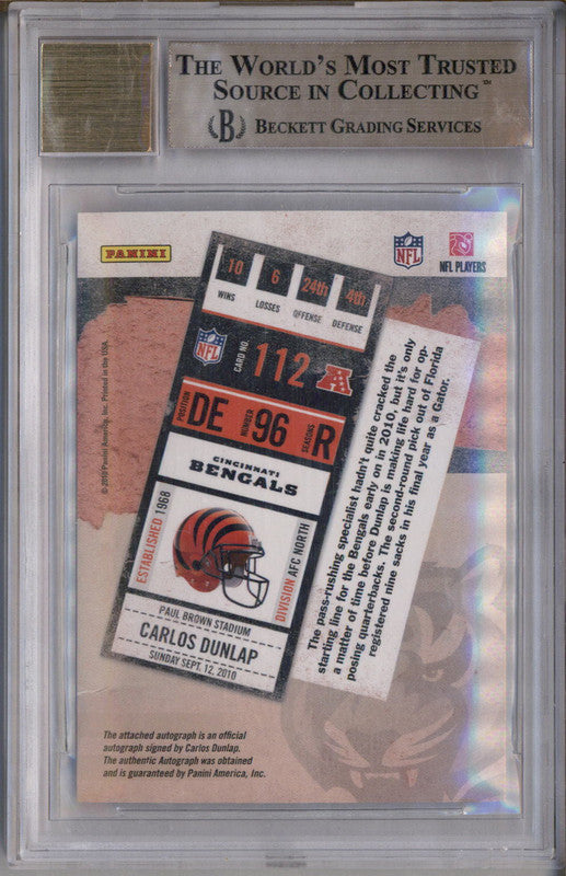 2010 Playoff Contenders #112 Carlos Dunlap Rookie Autograph RC Auto BGS 10