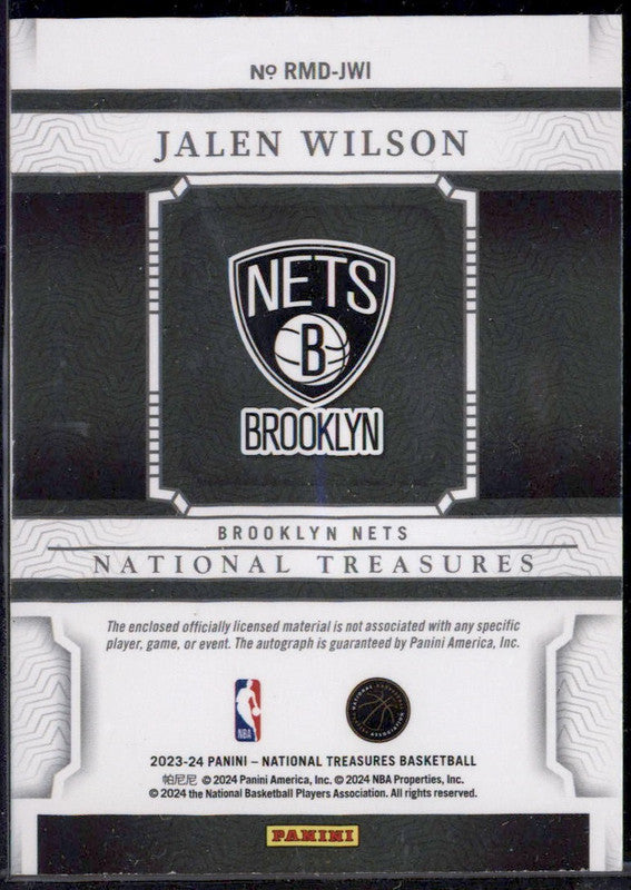 2023 National Treasures Rookie Materials Autographs Dual Jalen Wilson Auto /99