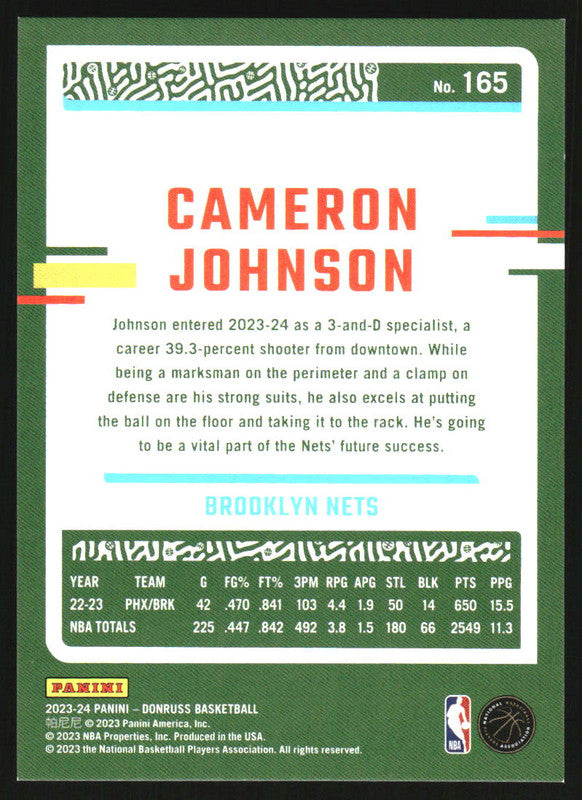 2023-24 Panini Donruss Choice Black Gold #165 Cameron Johnson /8