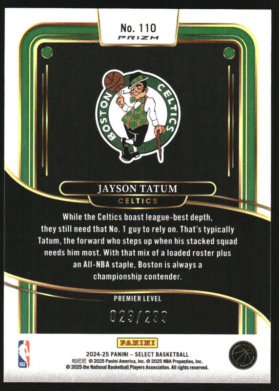 2024-25 Panini Select Premier Light Blue Prizm #110 Jayson Tatum /299
