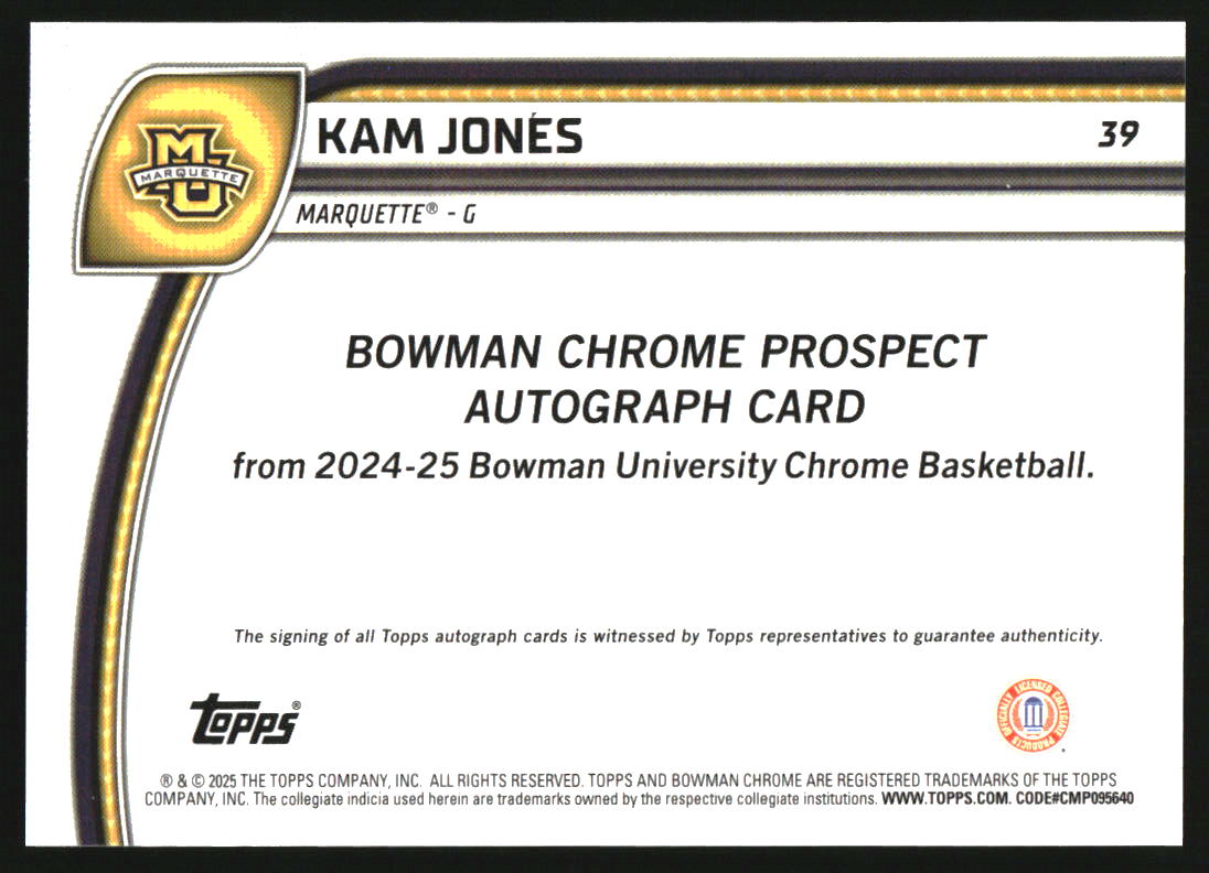 2024 Bowman University Chrome Autographs Stealth Refractor #39 Kam Jones RC Auto