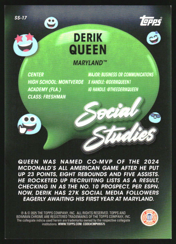 2024-25 Bowman University Chrome Social Studies Orange #SS-17 Derik Queen /25