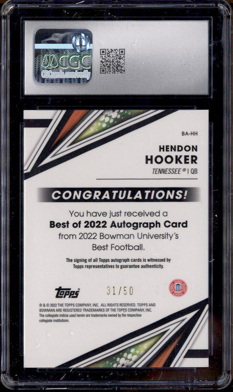 2022 Bowman University Chrome Gold Refractor Hendon Hooker Auto /50 CGC 10