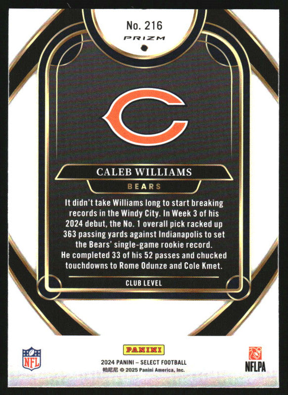 2024 Panini Select Club Silver Prizm #216 Caleb Williams RC