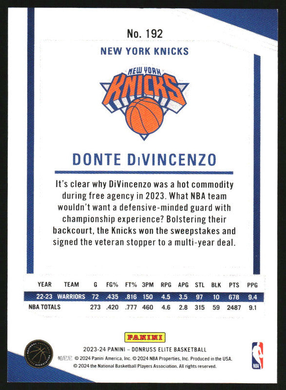 2023-24 Panini Donruss Elite Gold #192 Donte DiVincenzo /10
