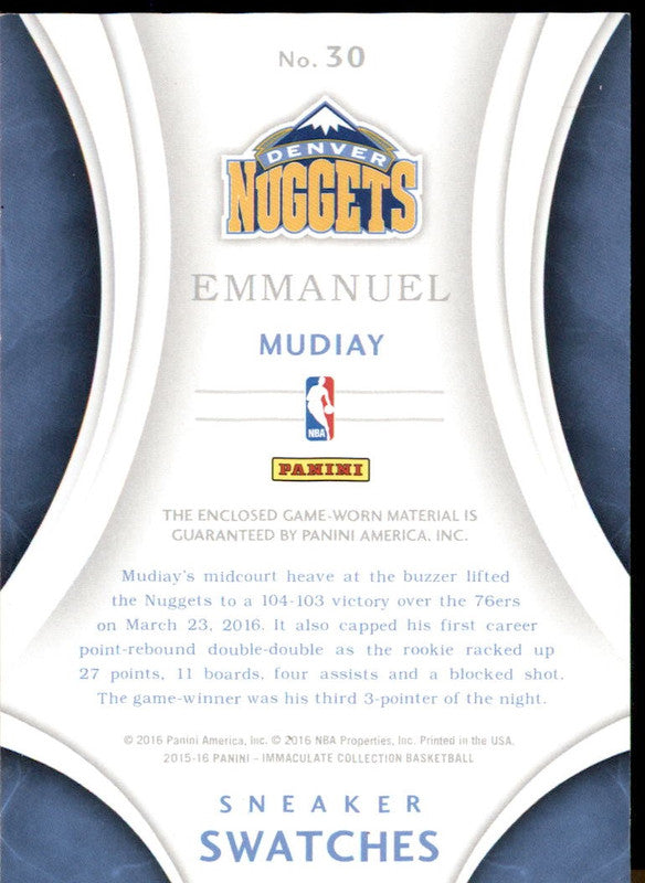 2015-16 Panini Immaculate Collection Sneaker Swatches #30 Emmanuel Mudiay RC /56