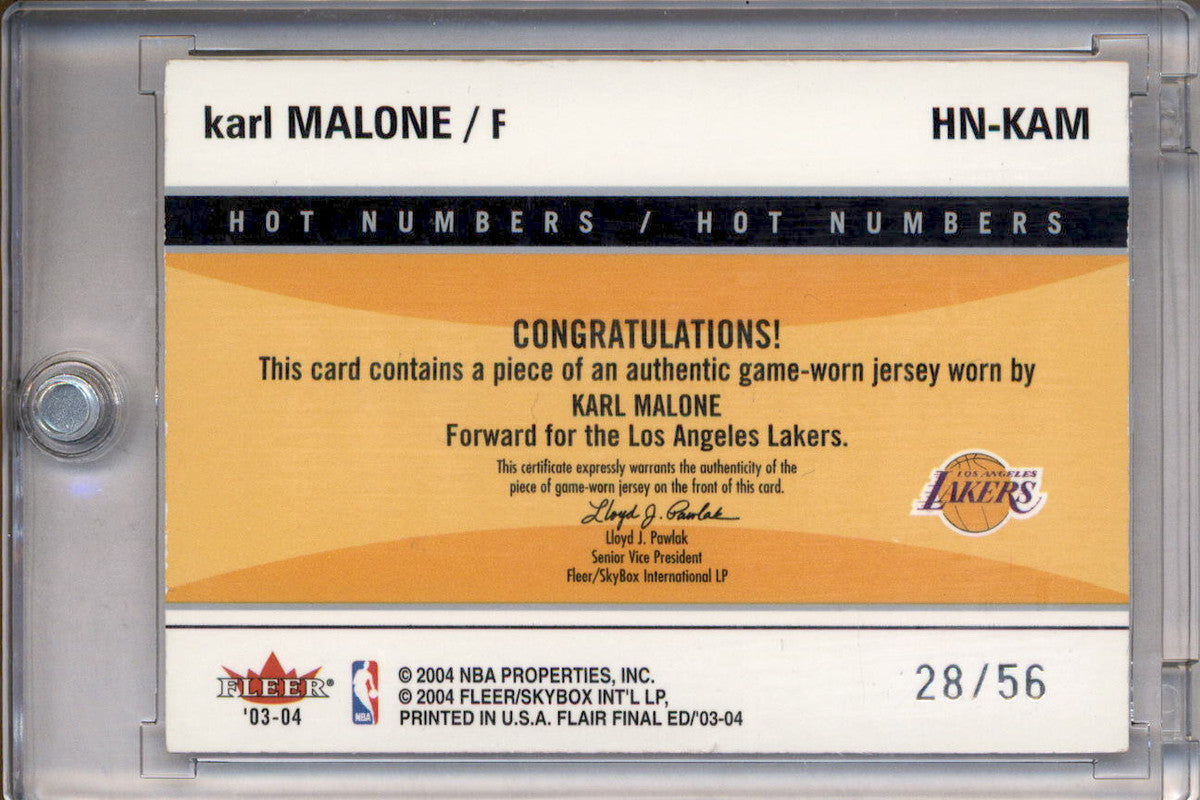 2003 Fleer Flair Final Edition Hot Numbers Patches Platinum Karl Malone /56