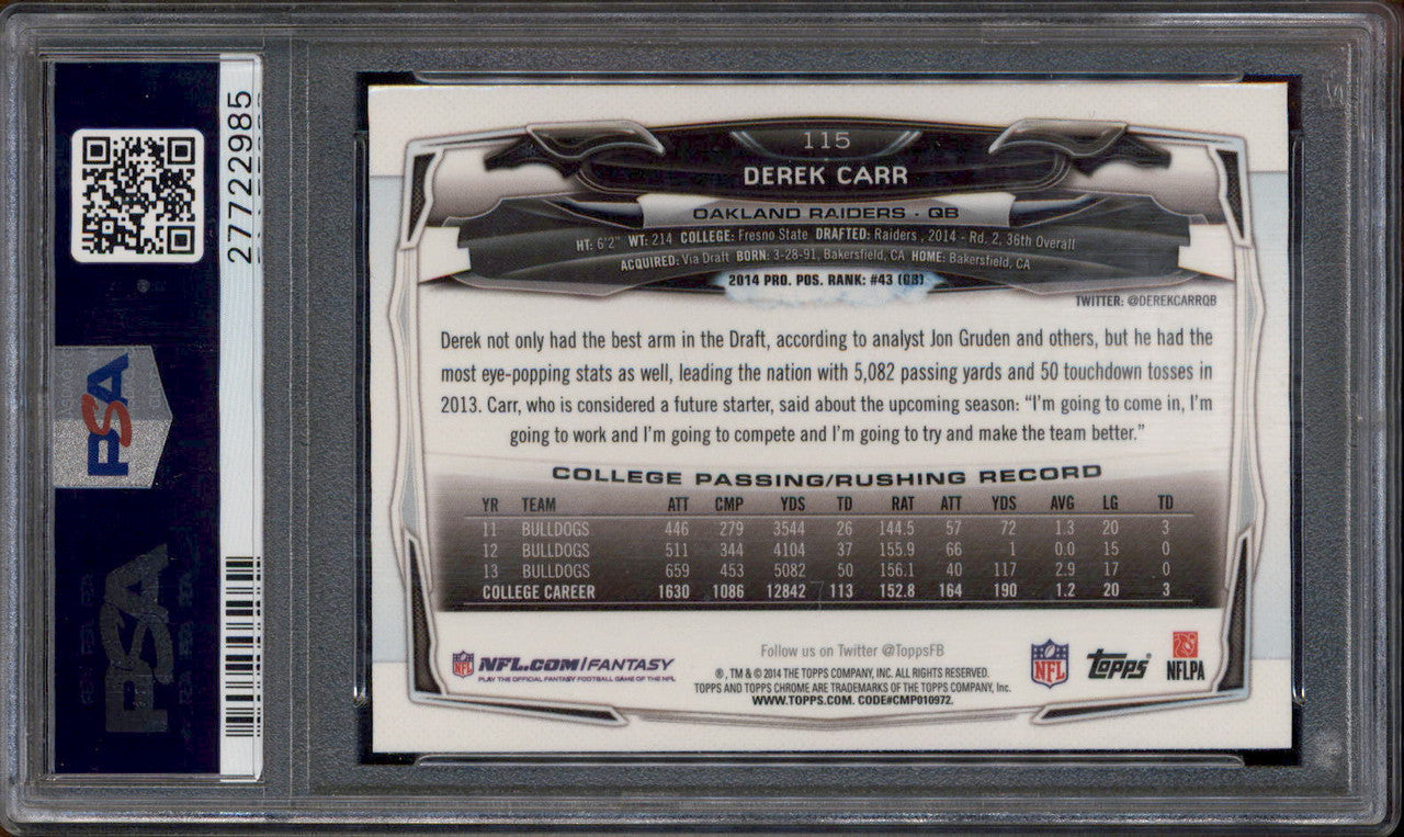 2014 Topps Chrome With Ball #115 Derek Carr RC PSA 10