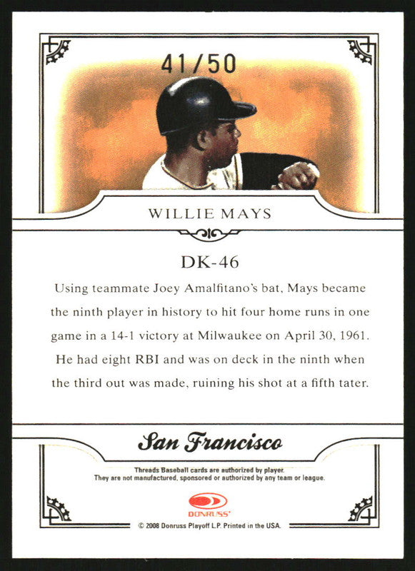 2008 Donruss Threads Diamond Kings Framed Blue #DK-46 Willie Mays /50