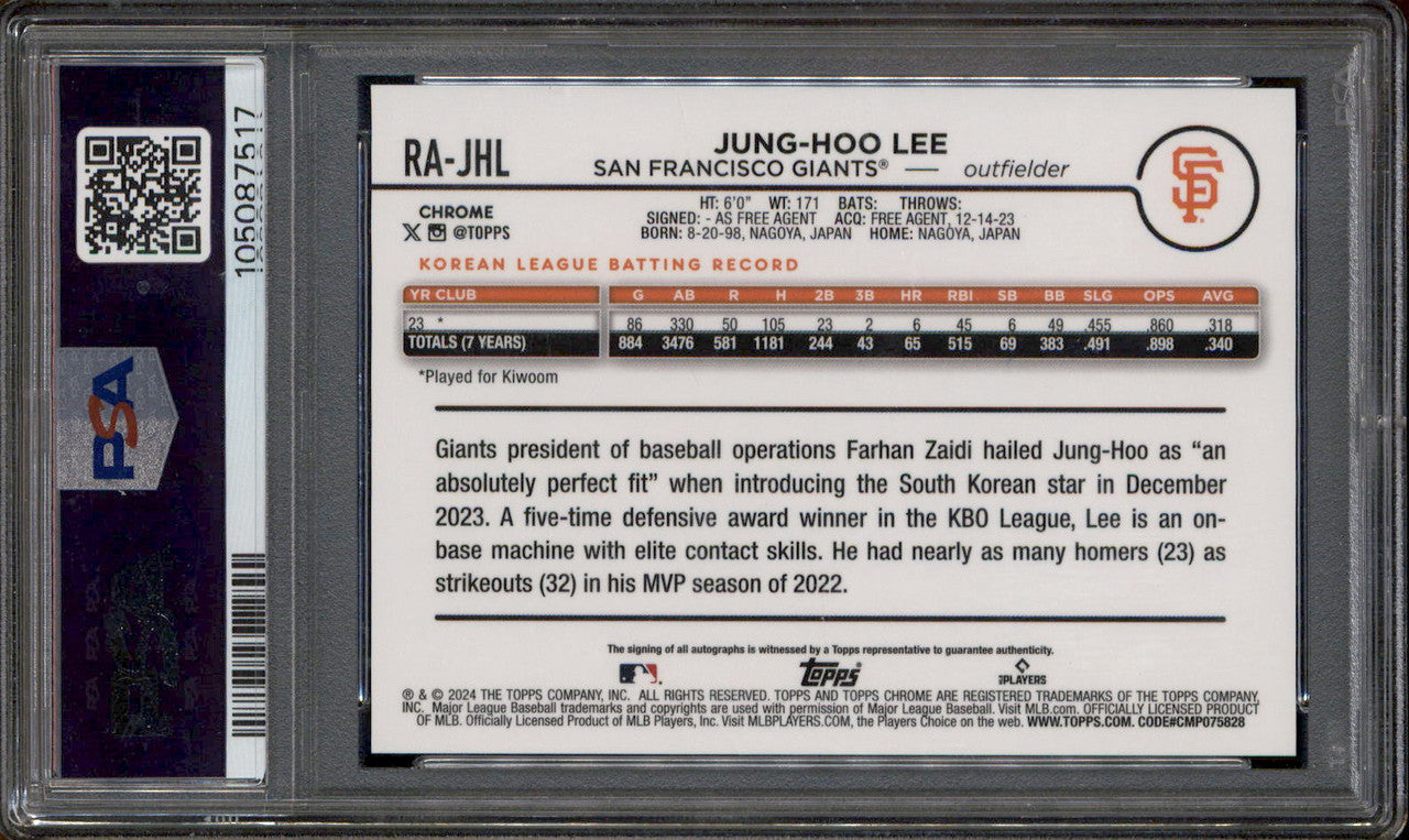 2024 Topps Chrome Rookie Autographs Orange Wave Jung-Hoo RC Auto /25 Lee PSA 9