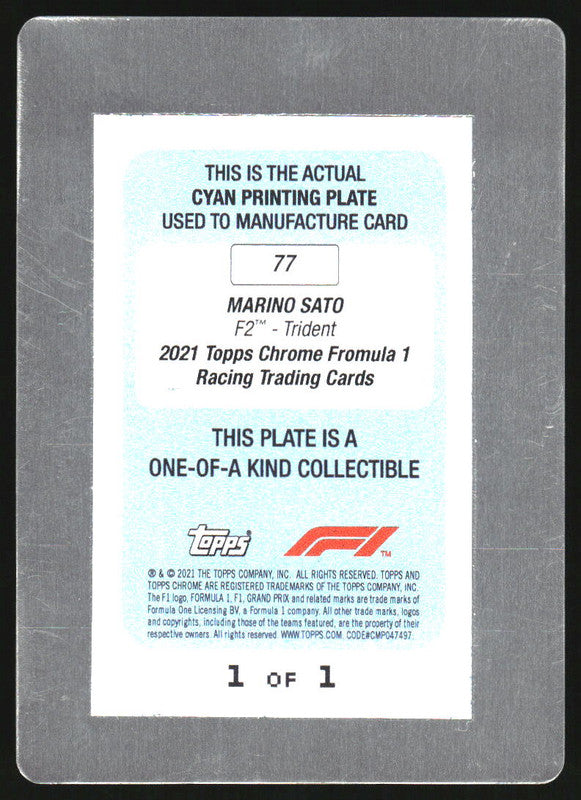 2021 Topps Chrome Formula 1 Printing Plates Cyan #77 Marino Sato 1/1