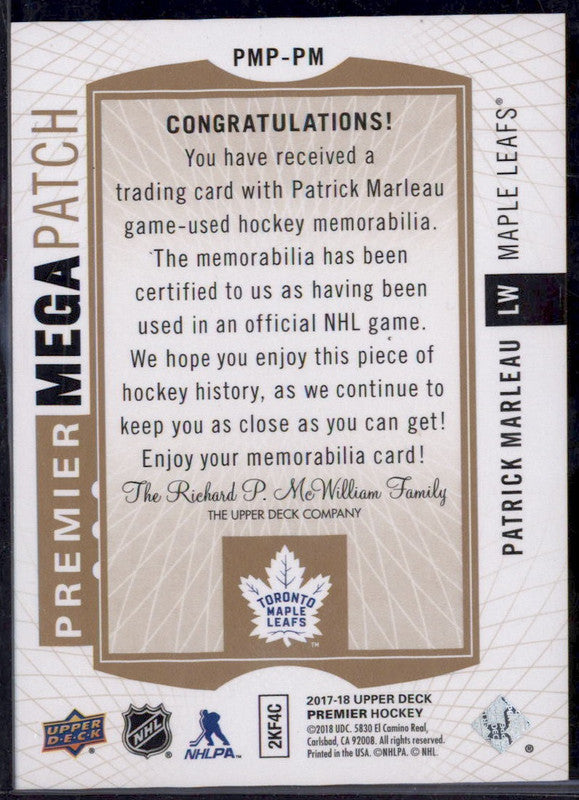 2017 Upper Deck Premier Mega Patch Jumbo Chest Logo Relics Patrick Marleau /21