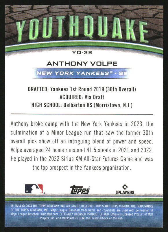 2024 Topps Chrome Youthquake Gold Refractor #YQ-38 Anthony Volpe /50