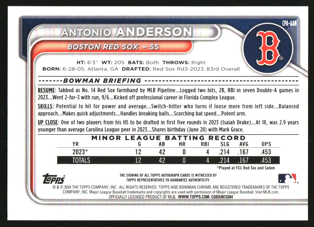 2024 Bowman Chrome Prospect Green Lava #CPA-AAN Antonio Anderson RC Auto /99