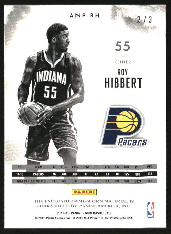 2014-15 Panini Noir Acetate Noir Materials Prime Tags Roy Hibbert /3