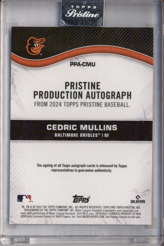 2024 Topps Pristine Production Autograph Orange #PPA-CMU Cedric Mullins Auto /25