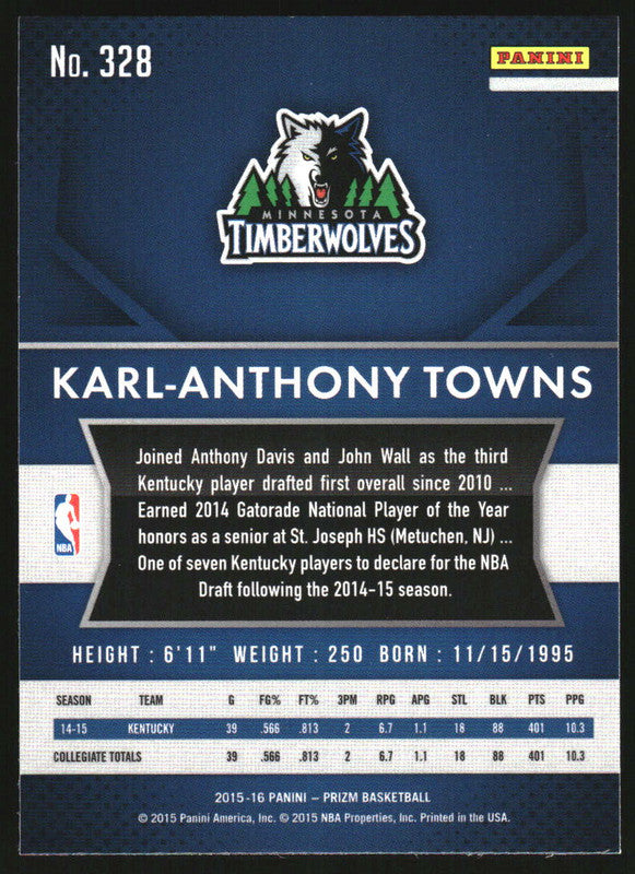 2015-16 Panini Prizm #328 Karl-Anthony Towns RC