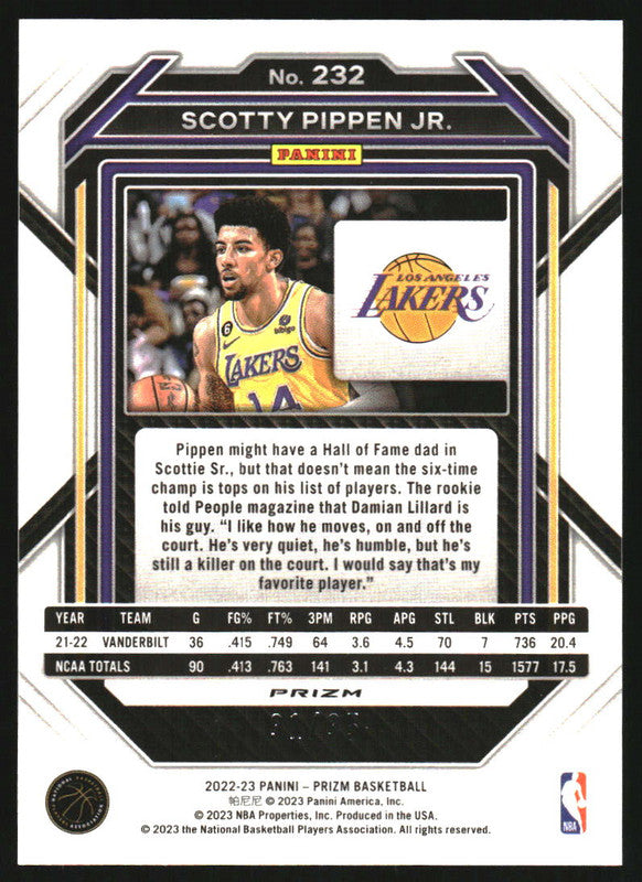 2022-23 Panini Prizm Prizms Blue Shimmer FOTL #232 Scotty Pippen Jr. RC /35