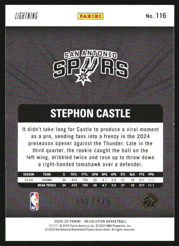 2024-25 Panini Revolution Lightning #116 Stephon Castle RC /175