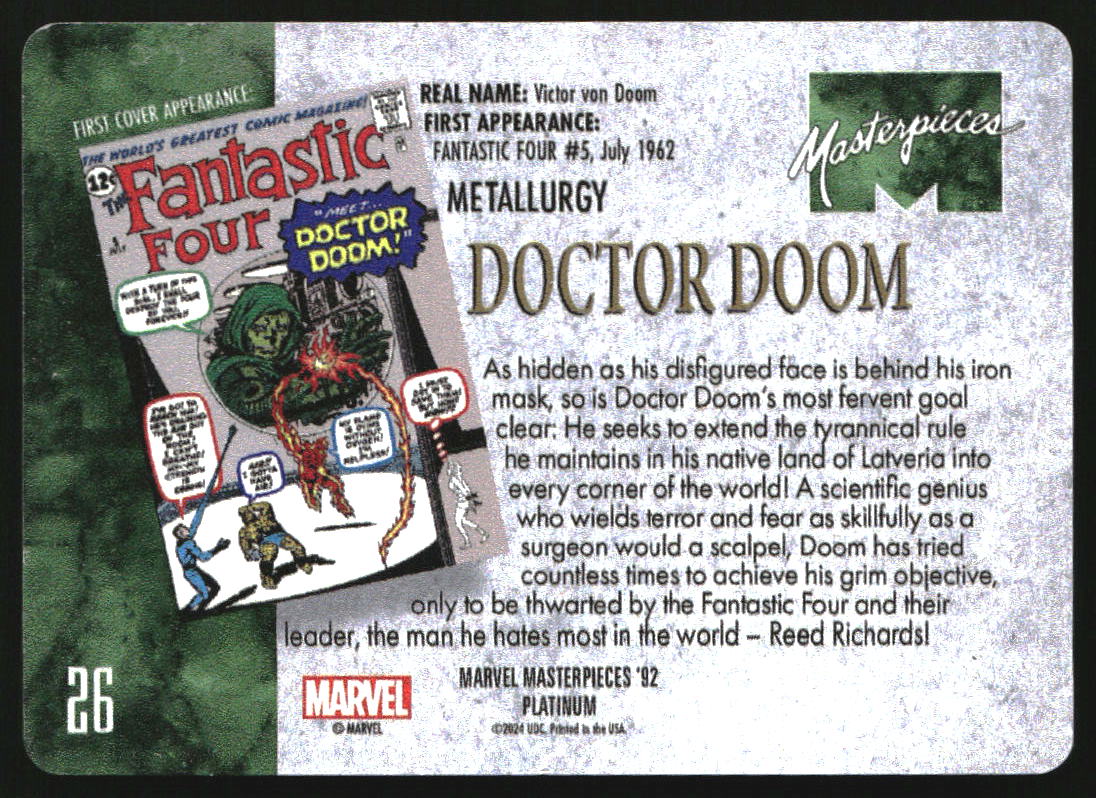 2024 Upper Deck Marvel Masterpieces '92 Platinum Metallurgy #26 Doctor Doom
