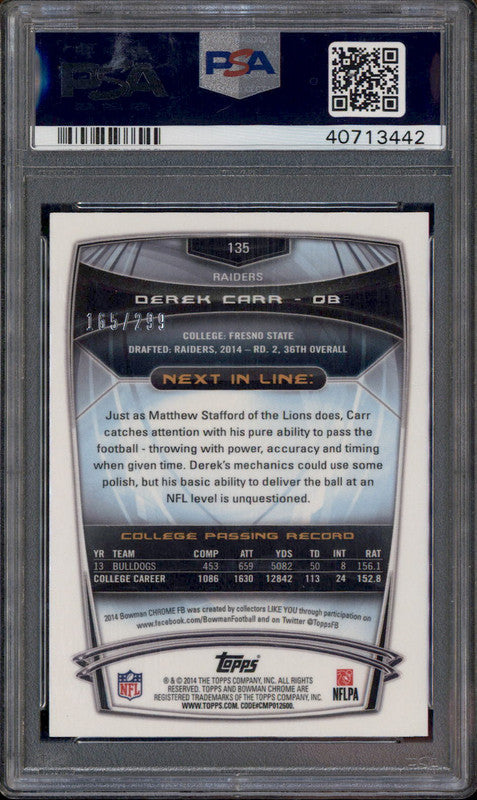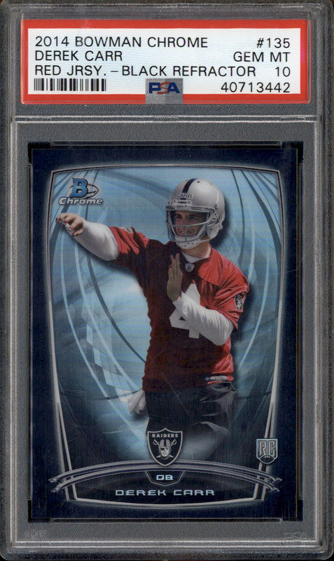 2014 Bowman Chrome Red Jersey Black Refractor #135 Derek Carr RC /299 PSA 10