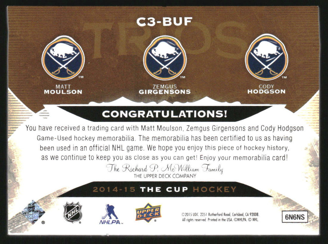 2014-15 The Cup Trioses Matt Moulson Zemgus Girgensons Cody Hodgson /10