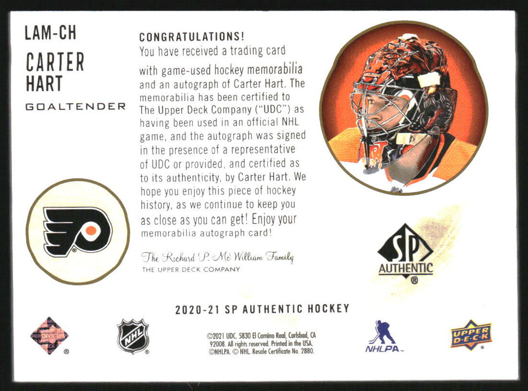 2020-21 SP Authentic Limited Auto Material Carter Hart /50