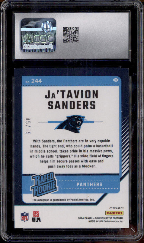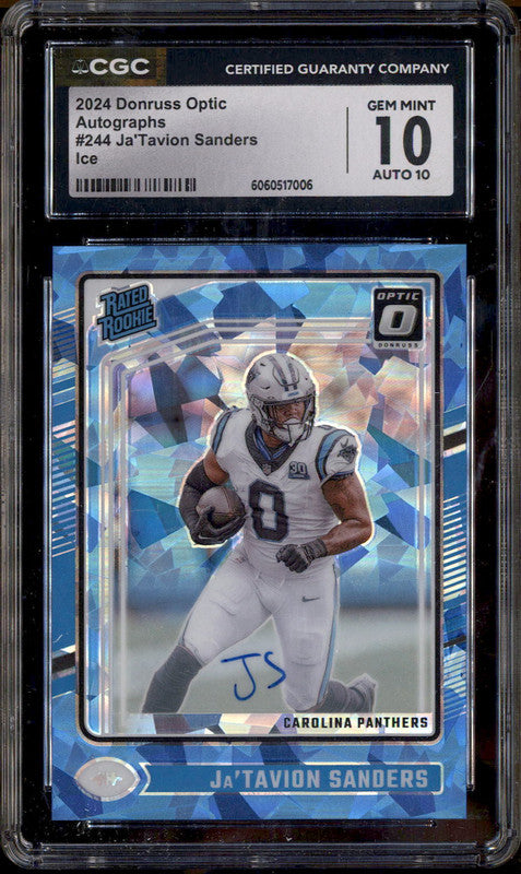 2024 Donruss Optic Ice #244 Ja'Tavion Sanders RC Auto /15 CGC 10