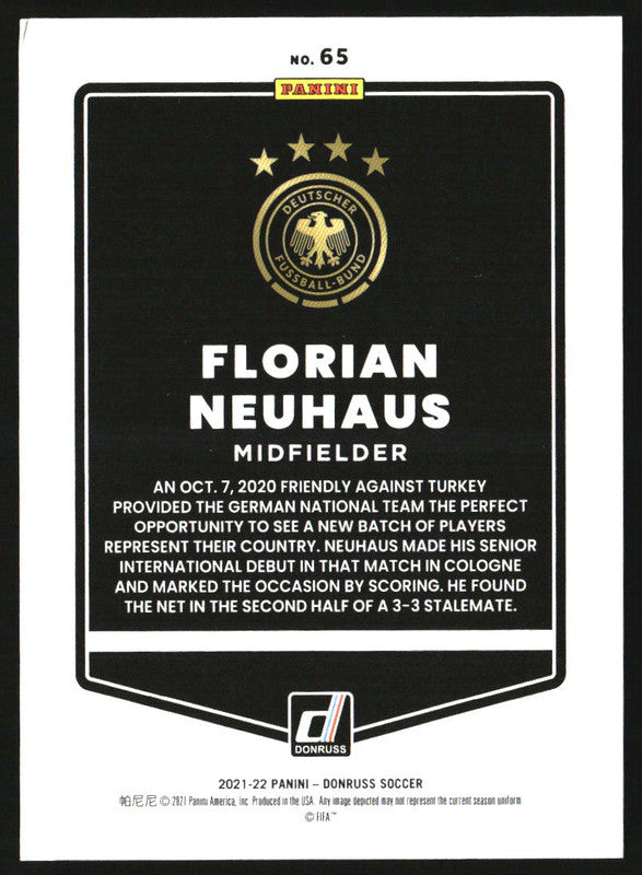 2021 Panini Donruss Holo Black Laser #65 Florian Neuhaus 1/1